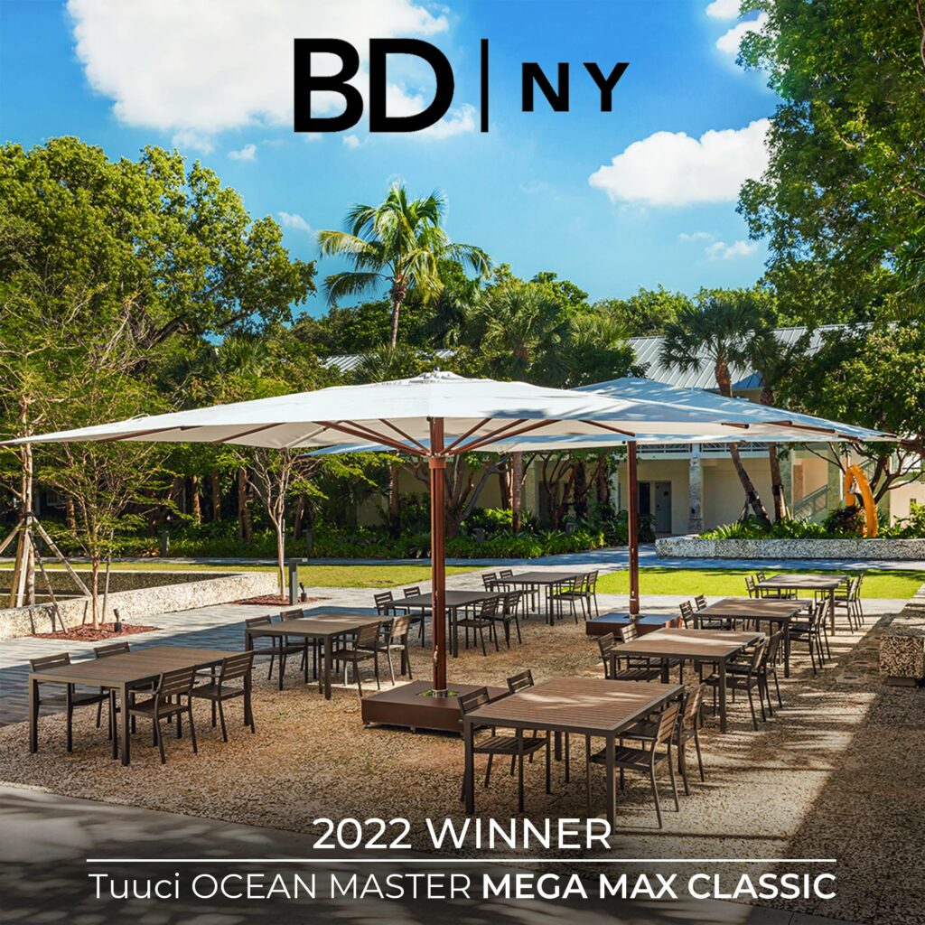 Tuuci’s Ocean Master MEGA MAX parasol is a statement piece intended to suit all large outdoor shade needs. Design and engineering meet to produce an elegant profile with robust construction created to withstand high winds up to 45mph sustained and gusts up to 75 mph. The strength, durability and serviceable design allows for an extended usable life reducing the environmental impact of the product.