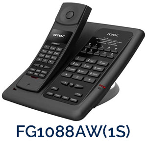 The Cotell Fuego SmartStation Premium DECT Cordless hotel phone gives your hotel guests the freedom to make and receive calls from anywhere in their room or suite. Designed to address the needs of premium hotels who want to give their guests a first class technology experience, the Cotell Fuego SmartStation Premium DECT Cordless hotel phone combines standard hospitality phone features with enhanced digital cordless technology (DECT) and stunning timeless design.