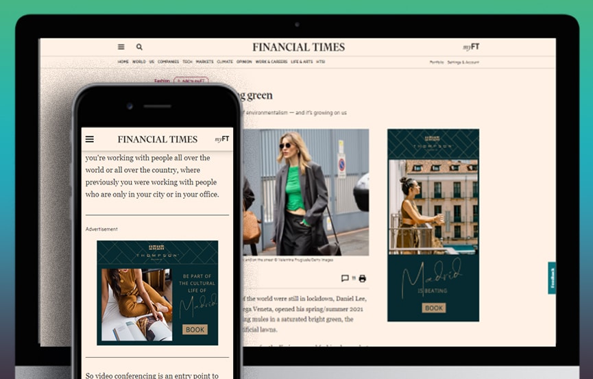 Jackson Daly has created a series of animated HTML5 banner adverts to promote Thompson Madrid across the Financial Times website FT.com.